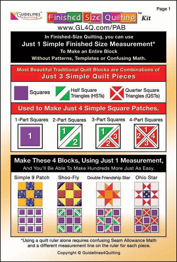 Booklet ($4.99 + S&H) below to any quilting ruler, includig Guidelines Rulers.